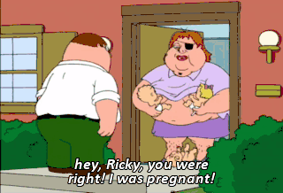 hey, Ricky, you were right! I was pregnant! Hey, What's up, Pete? Long time no see. Gosh, Patty! The years have been great to you. Well, I owe that to my better half. Who is it, sir? Uh, Angie?