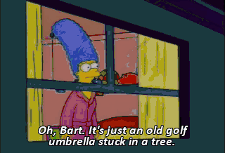 Oh, Bart. It's just an old golf umbrella stuck in a tree.