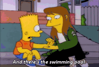 And there's the swimming pool. See you later, Bart. I'll never wash this hand again. Dad, make Bart wash his hand. Sorry, Lise. I no longer control the hand. The hand controls me! Dad!