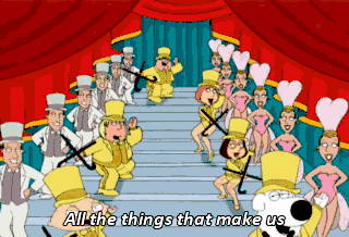 All the things that make us Laugh and cry He's a family guy What are you watching, Peter? Passion of the Christ. I tell you, Brian,