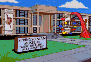 It's so exciting to do something cultural together. Matt Groening? What's he doing in a museum? He can barely draw! Ow! Oh, no! I'm being erased! Move it, bub! We got an installation to "installate."