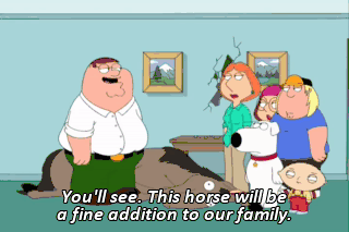 You'll see. This horse will be a fine addition to our family. You know what? I don't want him to feel self-conscious. Everybody pee.