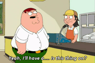 Yeah, I'll have a.... Is this thing on? A ttention, restaurant customers. Testicles. That is all. Give me that. Sorry, folks. Oh, my God. Is that what my voice sounds like? It's all whiney and nasally.