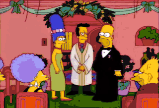 "Do you, Marge, take Homer in richness and in poorness--" "Poorness" is underlined--