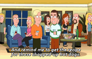 And remind me to get the recipe for those chopped-up hot dogs.