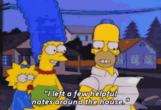 "I left a few helpful notes around the house." Ah, Come-- Gee! "Put food in me." I'll take that. Well, duh! With what, Ned?