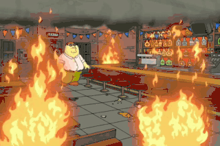 Hey, Horace. I'll have a Pawtucket Patriot. So how's your hammer hanging? ls somebody smoking in here? Hey, you ever watch that show Scrubs? Lois had it on the other night and I was kind of fading in and out.