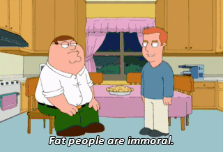 Fat people are immoral. How do you figure, sports fan? They're just bad people, like that Jackie Gleason.