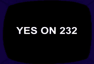 It says, "Yes on 232." We want no on 232! Yes on 242! Either way. The important thing is the system works. And the bumper stickers misspelled "on."