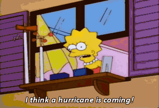 I think a hurricane is coming! Oh, Lisa! There's no record of a hurricane ever hitting Springfield. Yes, but the records only go back to 1978, when the hall of records was mysteriously blown away.