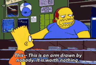 This-- This is an arm drawn by nobody. It is worth nothing. Can't you give me anything for it? I can give you this telephone. It is shaped like Mary Worth. No groaning in my store.