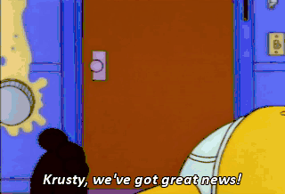 Krusty, we've got great news! Krusty, what have you done to yourself?
