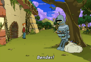 Bender! Come on, we've got to get some dirt on Alcazar.
