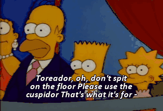 Toreador, oh, don't spit on the floor Please use the cuspidor That's what it's for -