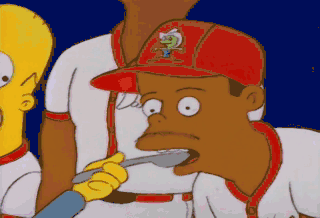 It's like there's a party in my mouth and everyone's invited. Excellent. Let's begin our training, shall we? Smithers... the medicine balls. Ugh. Ugh.