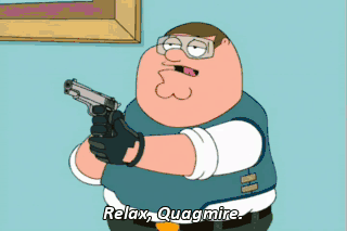 Relax, Quagmire. You're doing better than Peter Weller from the opening scene of HohoCop. Well, now that the mess is cleaned up and we're back from the emergency room...