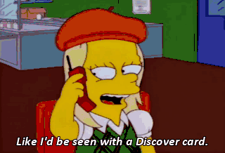 Like I'd be seen with a Discover card. You have a cell phone? And a purse! That's it. Don't be shy. Now maybe a little joke to break the ice. Or a big joke. Careful now. Nobody likes a show-off.