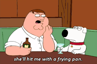 she'll hit me with a frying pan. which is why I'm gonna drink this frying-pan antidote. All right, hit me with this. Didn't work.