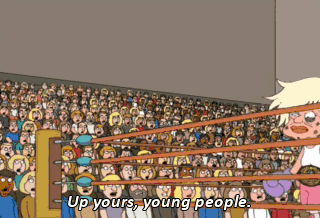 Up yours, young people. You and your rock and roll 8-track tapes!