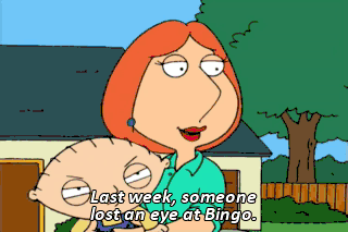 Last week, someone lost an eye at Bingo. I-17. Oh, Darn it. aah! Oh, I haven't played Bingo in years!