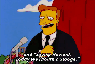 and "Shemp Howard: Today We Mourn a Stooge." Now, Krusty's closest friend and sidekick,