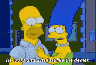 He looks and acts just like the dealer. I think they're related-- or at least in cahoots. just pick the red card. It's totally not hard. Twenty on this one, my good man. Sorry, dude. Black.