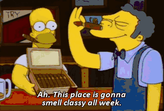 Ah. This place is gonna smell classy all week. To Homer, the Wall Street genius! Ah. Oh! Ooh! Ooh!