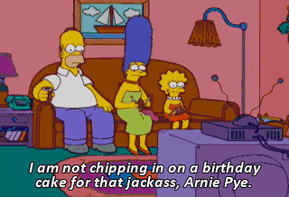 I am not chipping in on a birthday cake for that jackass, Arnie Pye.