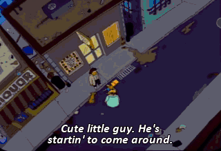 Cute little guy. He's startin' to come around. You look a little pale, son. We'd better get you some food. Here we are.