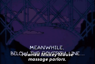 I owned Mickey Mouse massage parlors. Then those Disney sleazeballs shut me down. I said, "I'll change the logo-- put Mickey's pants on." Some guys you just can't reason with.