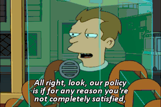 All right, look, our policy is if for any reason you're not completely satisfied, I hate you. Hey, fellas... Whoa! Okay, now I'm mad. Full price for gum? That dog won't hunt, monsignor.