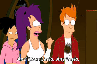 And I love Leela. Any Leela. We're robots, and we're in love. Let's ditch these meat jackets. Whoa! Cool! (IMITATING TERMINATOR) Hasta la vista, wiener. (IMITATING TERMINATOR) We'll be back, for our stuff.