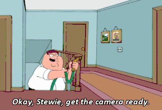 Okay, Stewie, get the camera ready. (SHOUTING) Peter, stop it! What the hell are you doing? What do you think I'm doing? I'm bonding with Stewie. (BOTH LAUGHING)