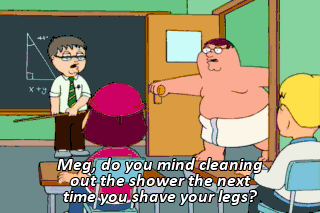 Meg, do you mind cleaning out the shower the next time you shave your legs?