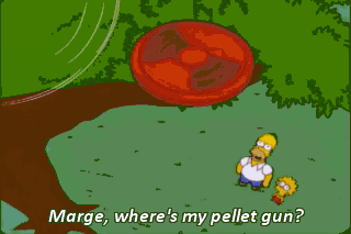 Marge, where's my pellet gun? In the tree! Right. D'oh! Oh, no! Not the good cheek! Oh!