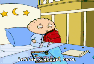 Let's see. Grenades, mace,