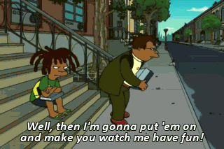 Well, then I'm gonna put 'em on and make you watch me have fun! See? Fun, fun-- Whoa! Dwight! Help me! I'll save you, Pops! Whoa! Ohh!
