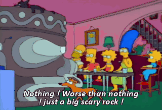 Nothing ! Worse than nothing ! just a big scary rock ! Hey, man, don't bad-mouth the head. Homer, it's the thought that counts. The moral of this story is, "A good deed is its own reward."
