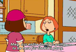 Meg, our entire family is going to be here for Stewie's party.