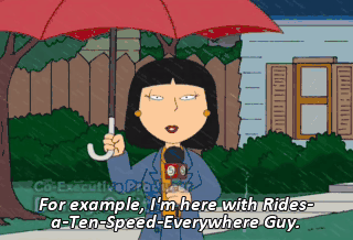 For example, I'm here with Rides-a-Ten-Speed-Everywhere Guy.