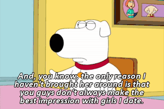 And, you know, the only reason I haven't brought her around is that you guys don't always make the best impression with girls I date.