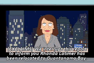 (EXCLAIMS) We interrupt this report to inform you Rhonda Latimer has been relocated to Guantanamo Bay. Coming up, the new format that makes HD obsolete. PETER: God damn it!