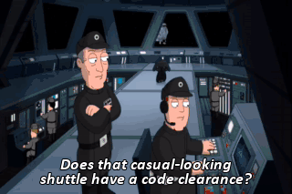 Does that casual-looking shuttle have a code clearance? Well, it's an older code, sir. (JAZZ MUSIC PLAYING) But it checks out. Wait a minute. Skywalker's on that ship. You can sense him? No, he's right there.