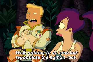 Well, nothing to do now but repopulate the human race. just me and you. And maybe you.