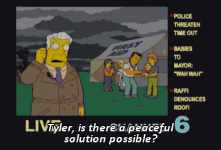 Tyler, is there a peaceful solution possible? (TYLER COOING) (BEEPING) (GASPING) All right, that's it. Show's over! Five, six, so long, hicks!