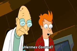 Hermes Conrad! (CRYING) Man! I'm dripping with placenta. Good thing it's Casual Friday.