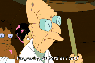 I'm poking as hard as I can! I'm sorry, Fry, but I'm afraid Leela is in an irreversible coma. Coma, coma, coma, coma, coma chameleon