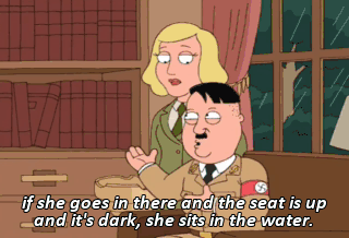 if she goes in there and the seat is up and it's dark, she sits in the water. No way. Get the hell out of here.