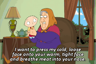 I want to press my cold, loose face onto your warm, tight face and breathe meat into your nose.