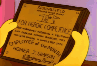 "For narrowly averting a meltdown "and proving without question "that nuclear power is completely safe. Employee of the month!" Oh, Homer! Ohh.